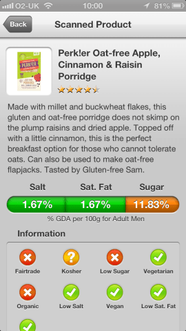 If you have been merrily eating gluten-free oats but still have some symptoms, it could be that you are sensitive to avenin. Fear not; should you find yourself in the oat-avoiding club, there are plenty of alternatives to try. Flakes can be made out of rice, millet, quinoa, buckwheat or amaranth, all of which can be used to make porridge (or flapjacks – yum!). These can generally be found in health food shops or online. Additionally, Perk!er Foods make an apple, cinnamon and raisin porridge using millet and buckwheat flakes that is gluten and oat-free.
