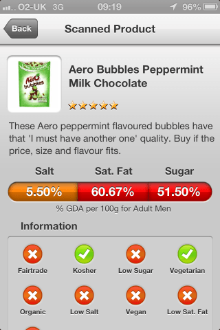 The Can I Eat It? Team are continually updating and adding more products to the App’s database. If you have the Can I Eat It? App, you can put the Aero chocolate tasted on your iPhone by entering any of the barcodes below. You don’t have it yet! Download the app now.
