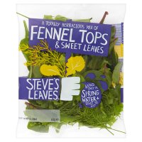 Steve’s Leaves Fennel Tops and Sweet Leaves blurb reads: A totally herbaceous mix of fennel tops and some of our favourite sweet leaves, namely: baby spinach, baby green batavia and baby chard. Not only is it a natural source of folic acid and vitamins A and C, but it’s washed only in spring water and ready to eat.