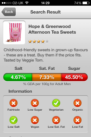 Hope and Greenwood make delicious sweets in grown-up flavours. This isn’t my favourite variety (that’s salted caramel popcorn) but it’s still tasty. Tasted by Veggie Tom.