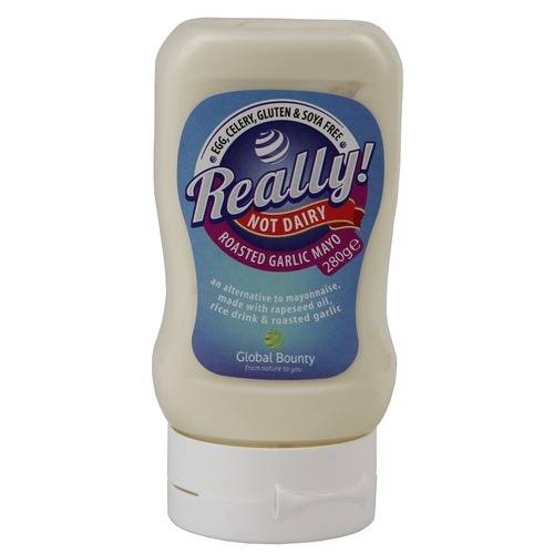The full ingredient list: Rapeseed Oil (54%), Water, Roasted Garlic (5%), Spirit Vinegar, Rice Drink (2%)(Water, Rice, Sunflower Oil, Sea Salt), Salt, Sugar, Mustard Flour, Lemon Juice Concentrate, Flavourings, Stabilisers (Guar Gum, Xanthan Gum), Acidity Regulator (Acetic Acid)