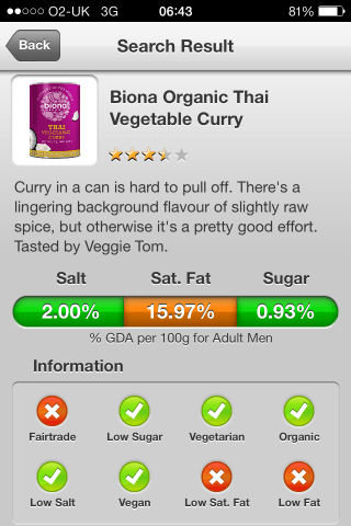 Curry in a can is hard to pull off. There’s a lingering background flavour of slightly raw spice, but otherwise it’s a pretty good effort. Tasted by Veggie Tom.