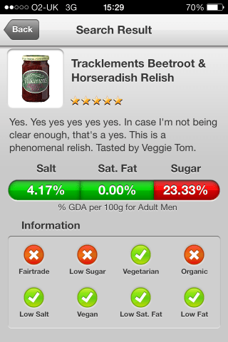 A superb quality horseradish condiment – well made and seriously punchy. Buy it if the price fits. Tasted by Veggie Tom.