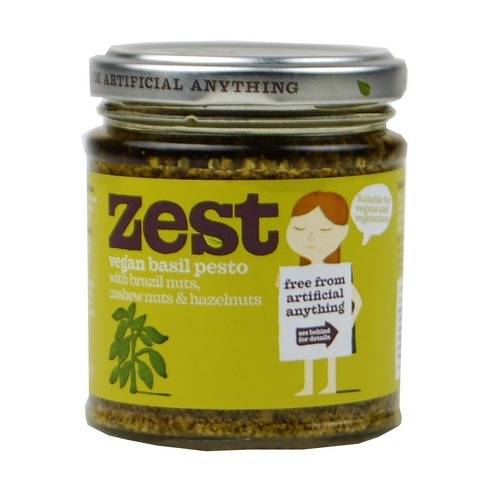 Pesto is a sauce which originates from the Genoa region in Italy. It’s traditionally made from pinenuts, garlic, basil, olive oil and hard cheese such as parmesan. It’s quite difficult to find a vegan friendly pesto although there’s lots of recipes around to make your own adding cashews for creaminess and nutritional yeast for the cheesy taste. Zest Pesto is a great discovery as there’s nothing that can beat the convenience of jarred pesto for a quick and easy meal.