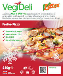 Ingredients: Pizza base (wheat flour, water, sugar, sugar beet pulp,extra virign olive oil, yeast, salt, malted barley), water, tomatoes, non-hydrogenated vegetable fat, (sustainable palm), wheat gluten, herbs, soya protein, onion, cranberries, rapeseed oil, potato starch, salt, thickeners: carageenan, locust bean gum, methyl cellulose, yeast extract, textured wheat protein, wholemeal wheat rusk, wheat fibre, calcium phosphate, sugar, natural flavourings, dried yeast, garlic puree, onion powder, preservative: potassium sorbate, black pepper, herb and spice extracts, garlic powder, natural colour carotene, malt extract.