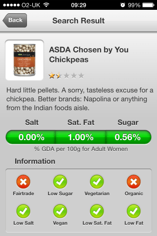 These are rubbish – undercooked, hard little pellets without a great deal of flavour. They’d make excellent shotgun ammo, but they’re not great in a curry. Serviceable for houmous or falafels if you don’t have any other options. Better brands: Napolina or anything from the Indian foods aisle.