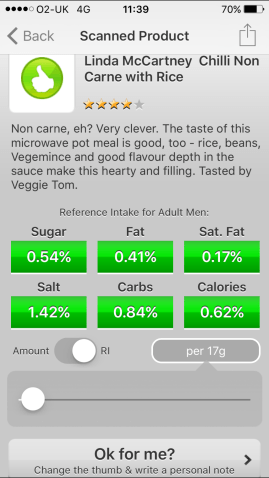 Non carne, eh? Very clever. The taste of this microwave pot meal is good, too – rice, beans, Vegemince and good flavour depth in the sauce make this hearty and filling. Tasted by Veggie Tom.