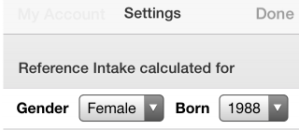 Please fill in the settings and Can I Eat It? will calculate your Reference Intake for: Fat, Sat. Fat, Salt,Sugar, Carbohydrates & Calories for each product.