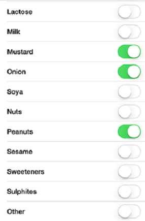 Please fill in the ‘I can’t eat’ and the App will triage out your unwanted products.